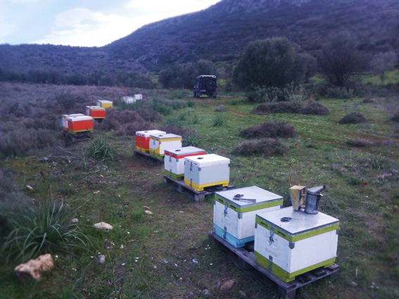 Μελίσσια στην πλαγιά κάτω απ' την Αγία μονή στην Άρια.