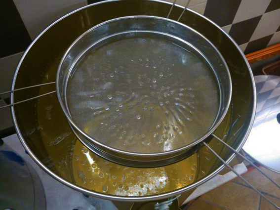Κατά το φιλτράρισμα, το μέλι διέρχεται μέσα από ανοξείδωτες σίτες, ώστε να απομακρύνονται τυχόν ξένα σώματα αλλά ταυτόχρονα να μην χαθούν απ' αυτό οι γύρες των φυτών και μικρά κομμάτια κεριού που υπάρχουν στη φυσική του σύσταση. Αυτό έχει σα συνέπεια κάποιες φορές να εμφανίζεται στην επιφάνεια του μελιού ένα ραφιναρισμένο "ξάφρισμα" (μικρά κομμάτια κεριού μαζί με κόκκους γύρης που επειδή είναι ελαφρύτερα ανεβαίνουν στην επιφάνεια).