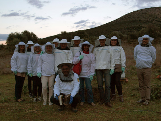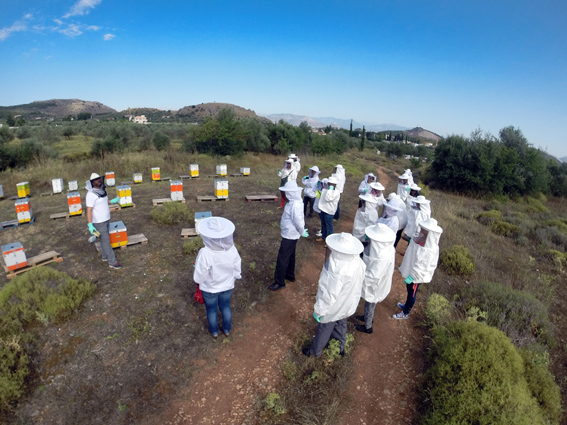 Φόρεσαν τις λευκές στολές και προσωπίδες και πλησίασαν μια αποικία μελισσών όπου είδαν από κοντά τις εργάτριες μέλισσες να μαζεύουν θυμαρίσιο μέλι, τους κηφήνες να κάνουν αερισμό κουνώντας τα φτερά τους για να διατηρούν σταθερό το μικροκλίμα της κυψέλης, τις νεογέννητες μέλισσες που μόλις έβγαιναν απ' τα κελιά, ενώ ανάμεσά τους αναγνώρισαν την μοναδική βασίλισσα να γεννά τα αυγά της στα κελιά της κηρήθρας.