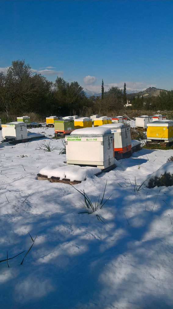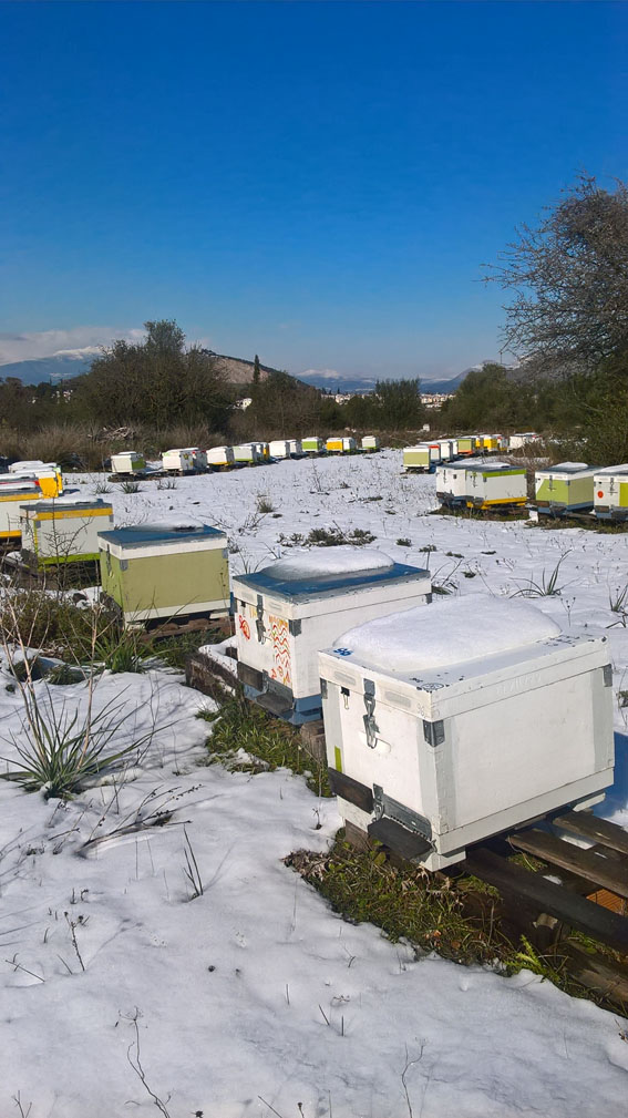 Πρωτόγνωρες συνθήκες για τα μελίσσια στην περιοχή μας. Τα πιο μικρά ίσως να χαθούν αν συνεχιστούν οι παγωμένες νύχτες και τα χιόνια μέχρι να έρθει η Άνοιξη.