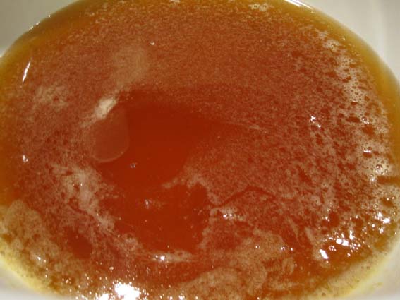 Στην επιφάνεια του στο πάνω μέρος του βαζου μπορεί να δημιουργηθεί ένα λεπτό στρώμα αφρού το οποίο αποτελείται από γύρη, κερί, πρόπολη και άλλες χρήσιμες ουσίες οι οποίες διέφυγαν μέσω της σίτας κατά την φιλτρανση και εμπεριέχονται στο μέλι, αλλά λόγω της θέρμανσης και του μικρότερου ειδικού βάρους απ το μέλι ανέβηκαν προς τα πάνω. Η διαδικασία αυτή λέγεται διαύγαση του μελιού, λαμβάνει μερικώς χώρα στη δεξαμενή αποθήκευσης πριν τη συσκευασία, αλλά μπορεί να ξανασυμβεί όσες φορές θερμαίνεται το μέλι προκειμένου να ρευστοποιηθεί.